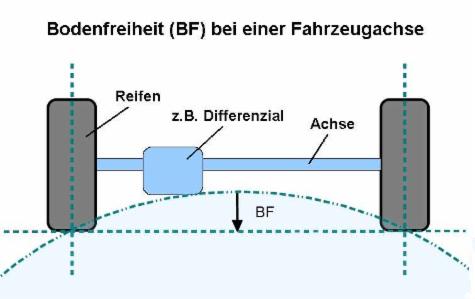 Definition: "Die Bodenfreiheit unter einer Achse ist durch die